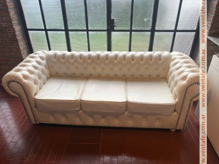 Sillon Chesterfield de Eco cuero Blanco, de 2m de ancho. El sillon esta nuevo, nunca fue usado, estuvo guardado durante mucho tiempo.