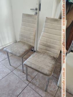 4 sillas blancas simil cuero con pie cromado