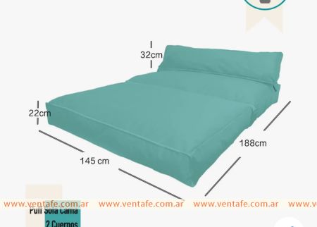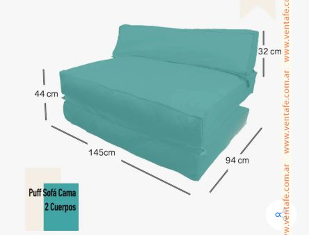 Sofá Cama de 2 cuerpos de diseño moderno estilo puff. No tiene patas ni estructura de madera, es un puff, su relleno es un mix de esferitas de telgopor y espuma picada, dentro de fundas internas para desenfundar y limpiar fácilmente.