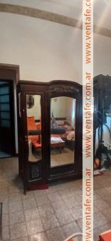 Ropero antiguo roble oscuro con detalles de madera labrada en relieve.posee 3 puertas con espejos. En su interior perchero y estantes amplios.