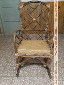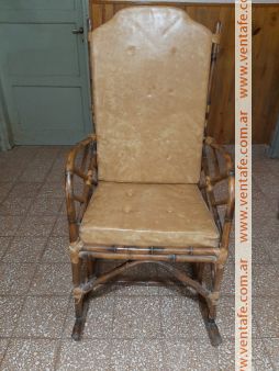 Sillón mecedor de caña, con almohadones (usado)