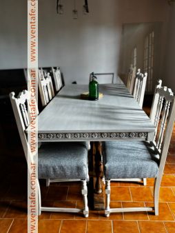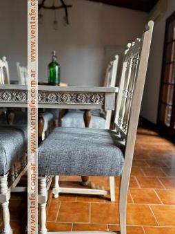 Mesa estilo VINTAGE Medidas 1.90 x 0.90 mt 6 Sillas tapizadas a nuevo