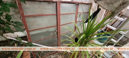 Ventana de hierro vidrio repartido, aproximadamente 2m de ancho x 1,10m de alto. Con dos hojas centrales de abrir, 1 lateral de abrir, y 1 lateral paño fijo.