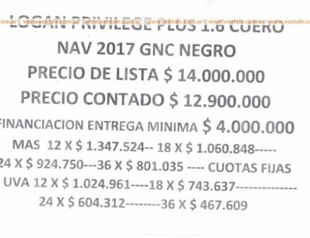 IMPECABLE DIGNO DE VER !!!! LOS PRECIOS CAMBIAN DEPENDIENDO EL MOMENTO QUE SE PAGUEN LAS UNIDADES Y SI LAS OPERACIONES SON CON CANJE O CONTADO , NO CONTESTAMOS MENSAJES , LLAME DE LUNES A VIERNES EN HORARIO DE COMERCIO DE 8:30 A 12 Y DE 16:30 A 19:30 Y LE PASAREMOS TODA LA INFORMACION ,CANJE Y FINANCIACION HASTA EL 80 % DEPENDIENDO EL MODELO DEL VEHICULO SOLO CON DNI CUOTAS FIJAS Y CUOTAS CON CREDITO UVA EN PESOS !!!!
