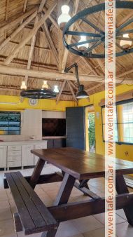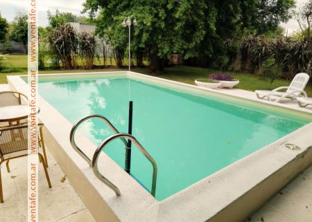 Desarrollada sobre un lote de 900 m2 (20 m de frente por 45 de fondo), cercado y parquizado. En barrio Jorge Newbery, frente a Aeropuerto, calle Alte. Brown, entre Margaritas y Claveles. Dos dormitorios con dos baños en suite, living y estar amplio, cocina comedor grande, quincho cerrado con asador, pileta de 35.000 lts, con filtro y bomba Vulcano. Gas Natural, agua corriente, cable e internet. Más fotos por WhatsApp.