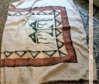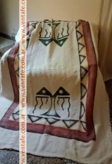 Alfombra o manta tejida tejida en telar, pintada a mano con motivo precolombinos.