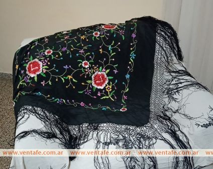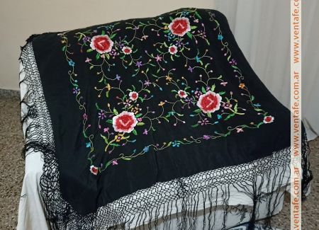 Vendo mantón de Manila bordado, comprado en Valencia ( España). Es cuadrado ( 100 x 100 cm), de seda negra con flores de colores.