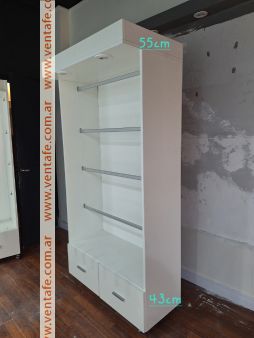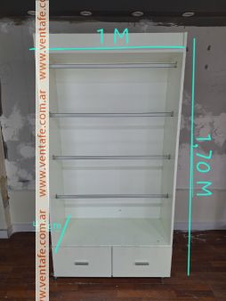 Vendo 5 muebles de melanina blancos con ruedas. 4 de ellos con dos luces Led cada uno. Todos cuentan con 2 cajones y cuatro barrales desmontables. En excelente estado.