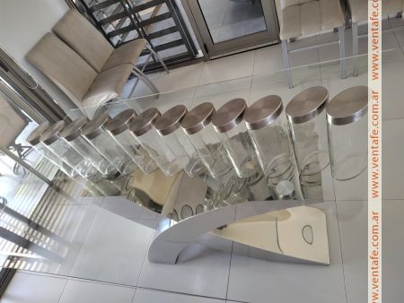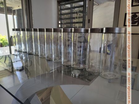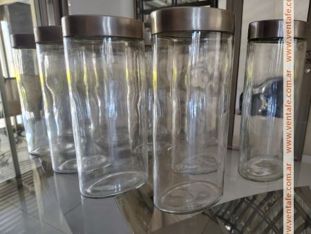 frascos de vidrio transparente, ovalados, con tapa de metal y hermética. Oferta comprando 12