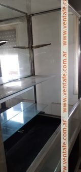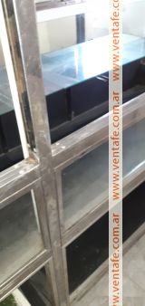 Gran vitrina, exhibidora de acero inoxidable 1,90de alto, y 2,50 de ancho . Con vidrios y un gran espejo trasero . Impecable .