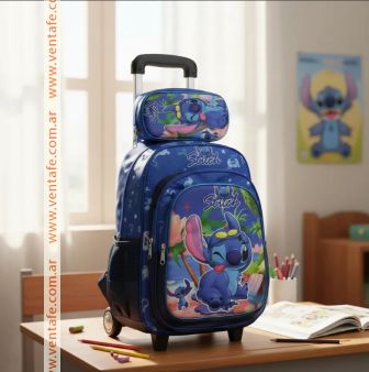 ¿Qué incluye el set Stich? Mochila con Carrito + Lunchera + Cartuchera $59.500