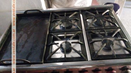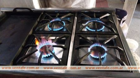 COCINA DE ACERO INOXIDABLE CON 4 HORNALLAS, PLANCHETA Y CARLITERA.