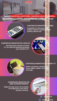 VENTA DE CONTROLES REMOTOS ORIGINALES DE: TV TUBO, LCD, LED, SMART TV, AIRE ACONDICIONADO, DIRECTV, CABLEVIDEO, FLOW, TDA, TV BOX, AUDIO, DVD, HOME THEATER, PROYECTOR.