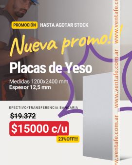 Aprovechá nuestra promo de placas de yeso en Casa Central y Sucursal Colastiné