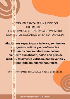 Alquilo espacio para talleres, congresos, seminarios, conferencias, retiros, eventos culturales. Hermosas instalaciones en la naturaleza !!