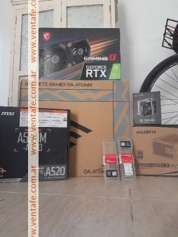 Ryzen 5 3600 6 nucleos 12hilos 32mb cache, 16gb de ram ddr4 a 3200mhz XMP furybeast con disipador, disipador gamer idcooling, placa mother a 520mk msi pro, rtx3060 gaming x 12gb, fuente ice gigabyte 550w 80plus bronce, gabinete gamer atomix oasis vidrio templado, disco ssd m2 nvme de 512gb western digital 5000mb escritura. windows 11. A toda prueba, trae tu técnico si queres, sin garantía.