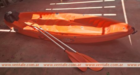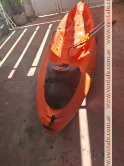 2- Samoa kayak Famili triplo, para 2 y 3 personas, color anaranjado con 2 remos y caja de pesca/tambucho original del kayak, $ 550.000