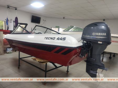 Casco Tecno 445SS, con doble consola integral, butacas giratorias tapizadas, cornamuza en proa, cancamo en proa y popa, guanteras laterales, tapizados en proa y popa, direccion y volante, luces de navegacion, piso matrizado, caja de bateria. Con Motor YAMAHA 70hp, 4t....Incluye Trailer. Todo Nuevo