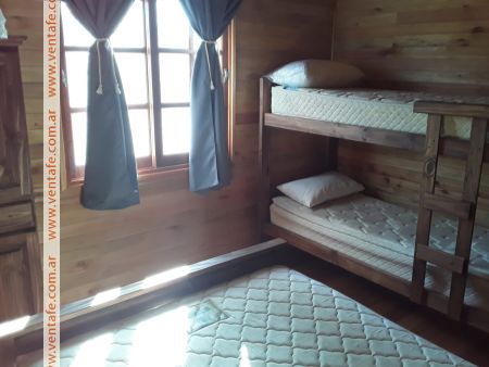 La cabaña esta situada en Arroyo Leyes, equipada para hasta 8 personas, cuenta con 2 dormitorios (cama matrimonial y cucheta en cada habitación). Cocina comedor y baño, 2 garajes en planta baja. En el predio también contamos con un quincho, con baño y asador techado (también hay asador al aire libre).