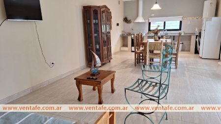 Hermosa CASAQUINTA en Arroyo Leyes, barrio "FAROS DEL LEYES", km16.5 a 50 metros de la Ruta 1. Ideal para pasar estadías tranquilas en un entorno tranquilo y seguro. La casa quinta está equipada para 5 personas. Presenta una piscina hermosa, quincho, asador en el exterior. Por dentro dos habitaciones, hermoso baño y cocina comedor muy amplia. WIFI, CABLE VIDEO. Está situada muy cerca de una hermosa laguna y muy cerca de estratégicos punto de pesca de costa, además de conocidas bajadas de lanchas